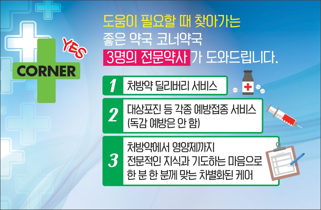 코너약국과 예스약국이 코너예스약국으로 하나되어 여러분과 함께합니다.